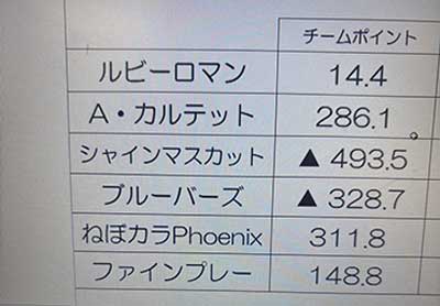 暫定1位は変わらずねぼカラPheonixですが、A・カルテット、ファインプレーも近いところにいます!