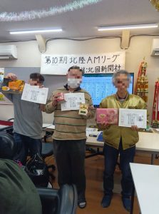 2026年1月17日 第63回健康マージャン交流大会 優勝 H様準優勝 O様 3位 K様 おめでとうございました。