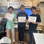 - 10.1 水曜日大会いっしー参戦回2025年10月1日 水曜日大会いっしー参戦回 優勝 T様2位 N様3位 M様 ペア優勝はT様・M様ペアでした… 続きを読む: 10.1 水曜日大会いっしー参戦回